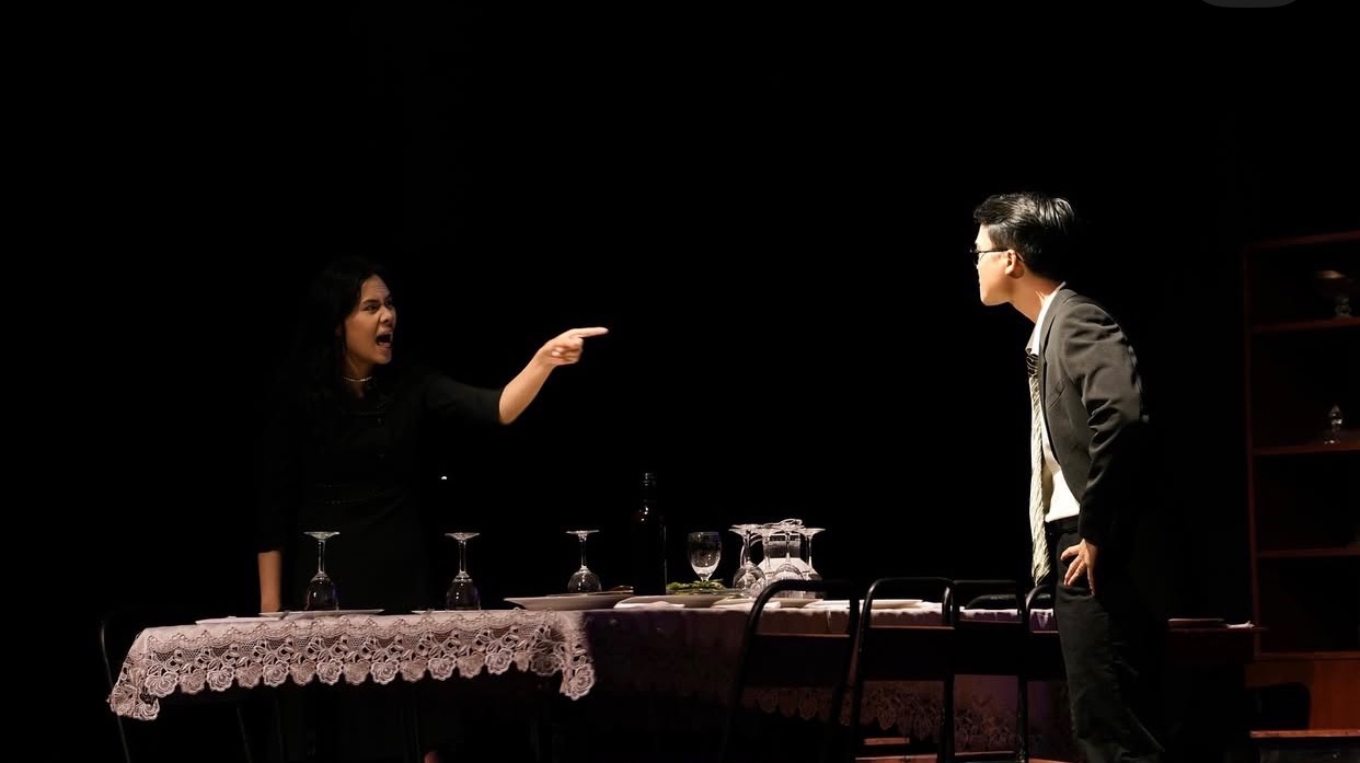 Pada pementasan Sun Community, suasana panggung yang sangat realis itu dengan cepat bertransformasi menjadi arena pertarungan, dari yang subtil hingga blak-blakan. Setiap sudutnya seakan berbicara. Meja makan di sisi kiri, yang semestinya menjadi simbol kehangatan dan kebersamaan, justru menjadi “meja hijau” di mana kebenaran dikorbankan dan kebohongan disantap layaknya hidangan. Di tengah, sofa tua yang usang menjadi jantung dari segala gejolak emosi, tempat pelukan yang tidak tulus, pertengkaran yang meledak, tangisan yang disia-siakan, dan perpisahan yang tak terelakkan.