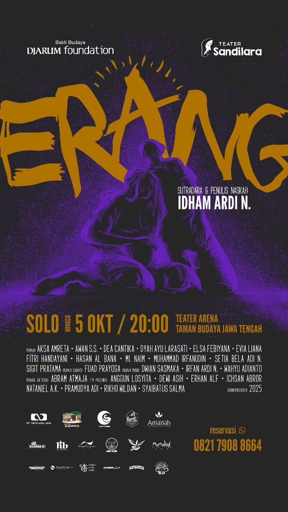 Suara gema kelelahan terhadap kekerasan tersebut akhirnya hinggap dalam sebuah kelompok bernama Teater Sandilara. Teater Sandilara baru saja melangsungkan pementasannya dengan judul Sandiwara Gelap: Erang di RKBBR Kudus pada tanggal 21 September 2025. Berbekal hulu ledak dari Kudus, mereka pun bersiap memperpanjang usia pementasan ini di Solo yang akan diselenggarakan pada 5 Oktober 2025 nanti. Pertunjukan teater yang ditulis dan disutradarai oleh Idham Ardi Nurcahyo ini menceritakan Mijah dan Tarjo yang lelah dengan kekerasan dalam bentuk peperangan. Mereka adalah sepasang suami-istri miskin yang menanti kelahiran anaknya di tengah negara dengan kondisi “darurat perang”. Sudah jatuh tertimpa tangga, mereka kembali sial; negara mengeluarkan peraturan yang melarang rakyat miskin untuk memiliki anak. Mereka terus menyibak perang untuk membesarkan anaknya di negara yang damai, di mana keamanan dan kebahagiaan tidak mahal harganya. Dengan tangan gemetar akibat lapar, akhirnya mereka pun tetap bertekad untuk memerangi perang.